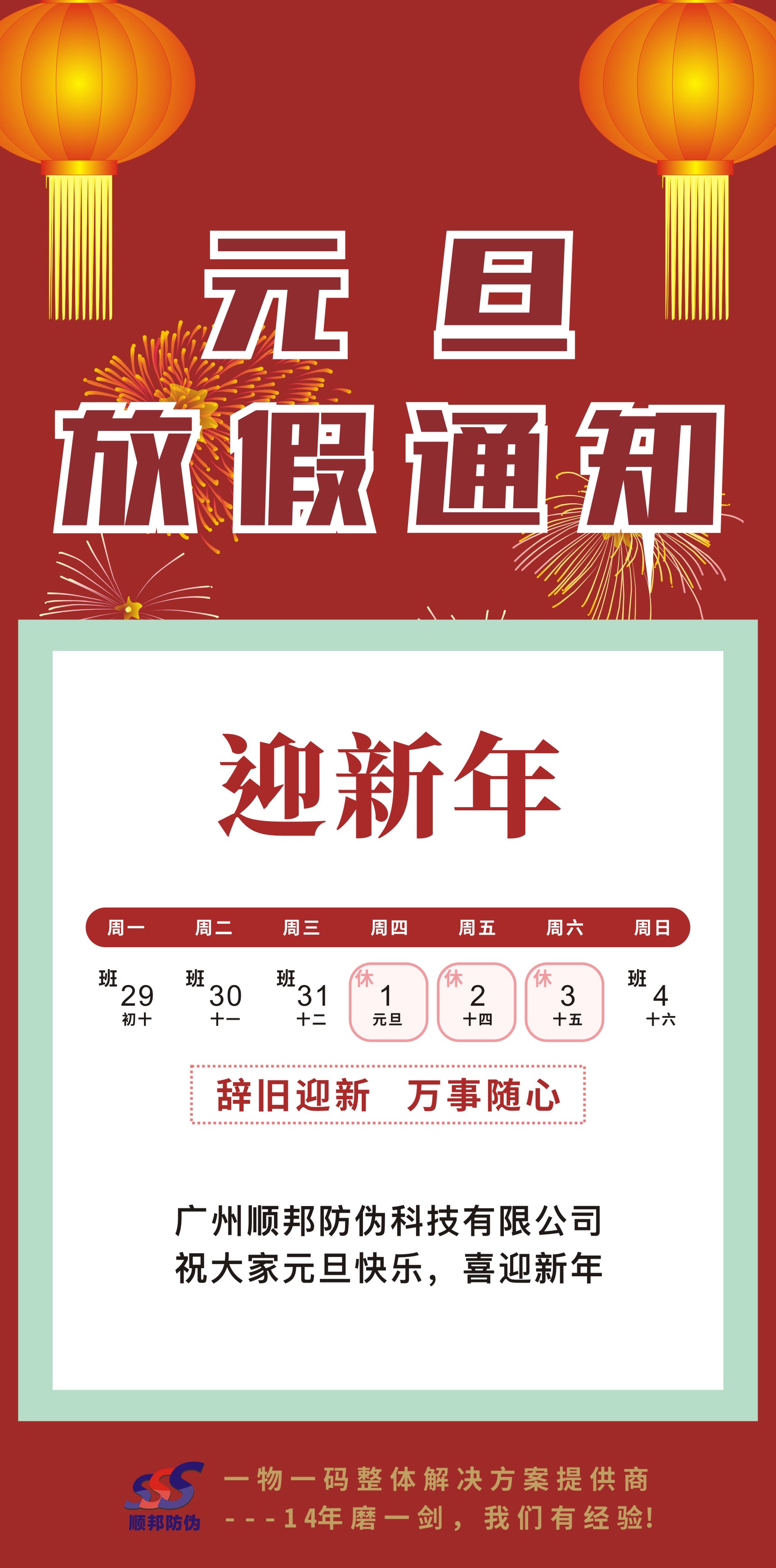 广州顺邦防伪科技有限公司2026元旦放假通知